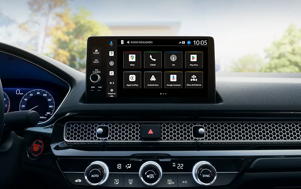 Navegação mais amigável e intuitiva, integra funções do navegador GPS, áudio, Bluetooth, câmera de marcha à ré e controles no volante.